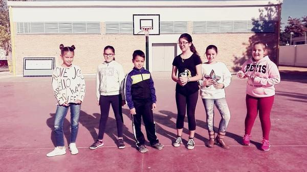 Nuestros nombres son Ainara, Nieves, Rubén, Andrea, Salma y Estela, y así aparecemos en esta foto hecha en el patio de nuestro colegio, el Vélez de Guevara. Ya hemos comenzado esta aventura de Luces de barrio junto con todos nuestros compañeros y compañeras de 5º y estamos deseando contaros todo